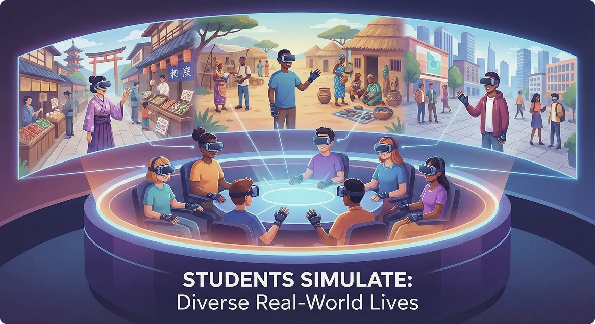 Students step into diverse real-world lives, experiencing challenges, opportunities, and cultural contexts firsthand. They don’t just learn about the world—they live it through immersive simulation.